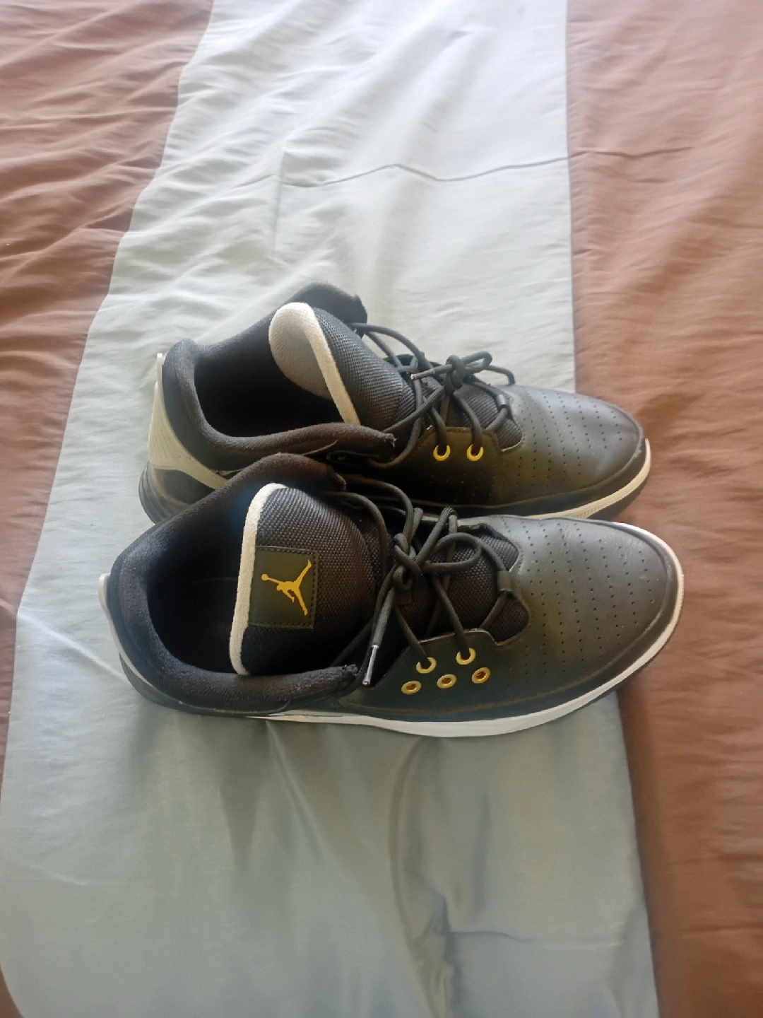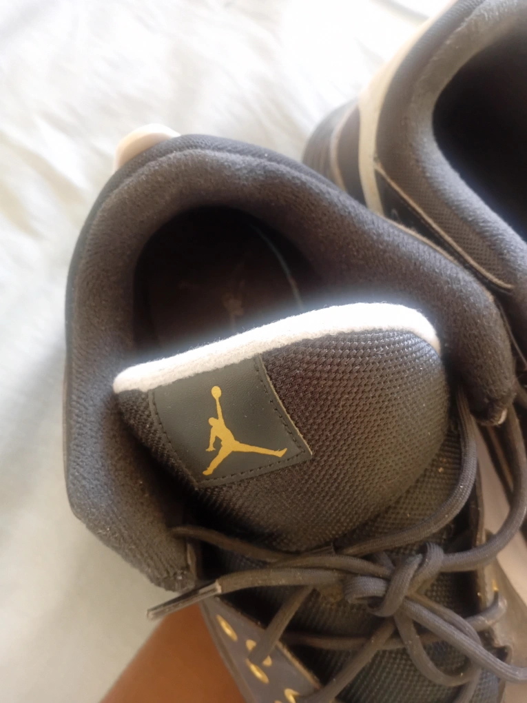 Jordan low top sneakers in great condition! The shoes are black with gold accents. Perfect for everyday wear!