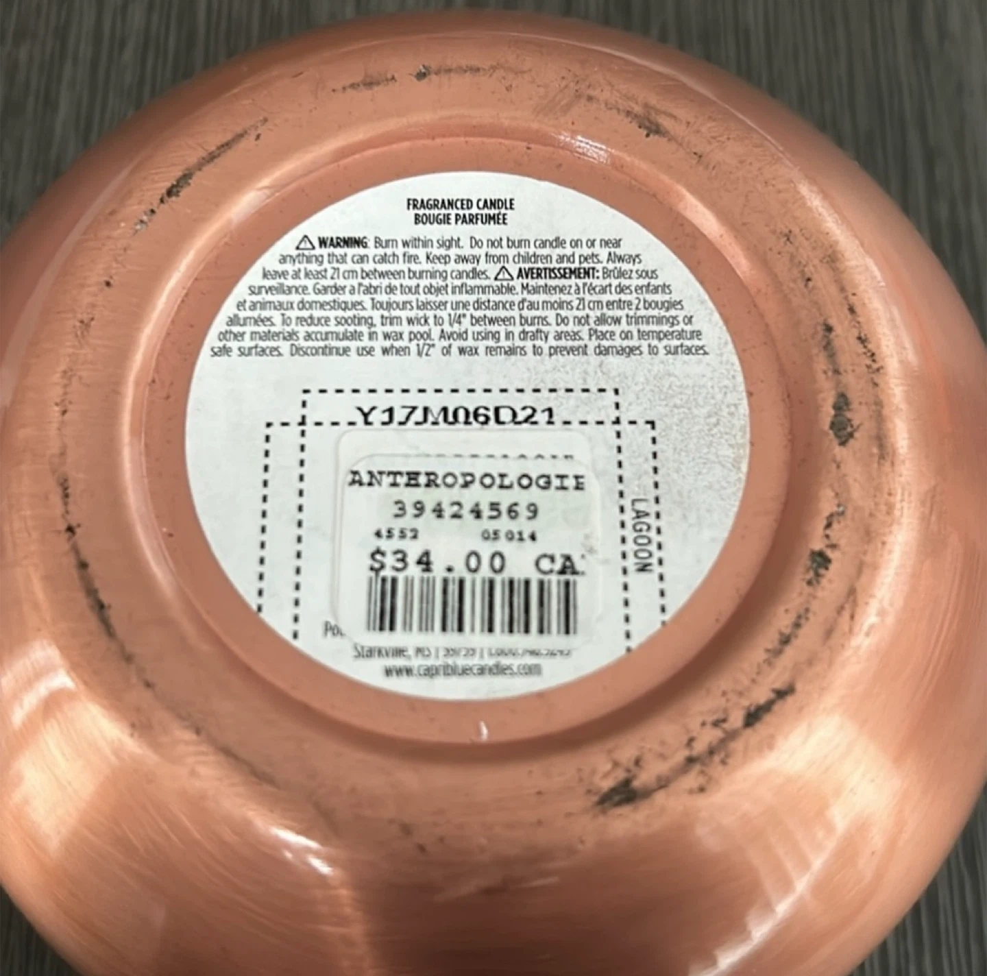 Selling an Anthropologie Lagoon candle! It's a beautiful candle that will add a touch of warmth to any room. Originally $34 CAD