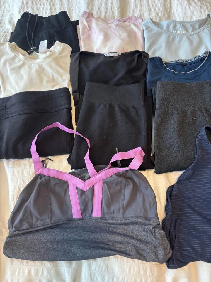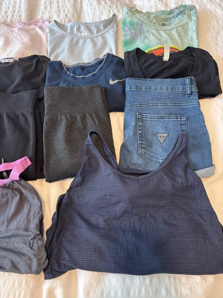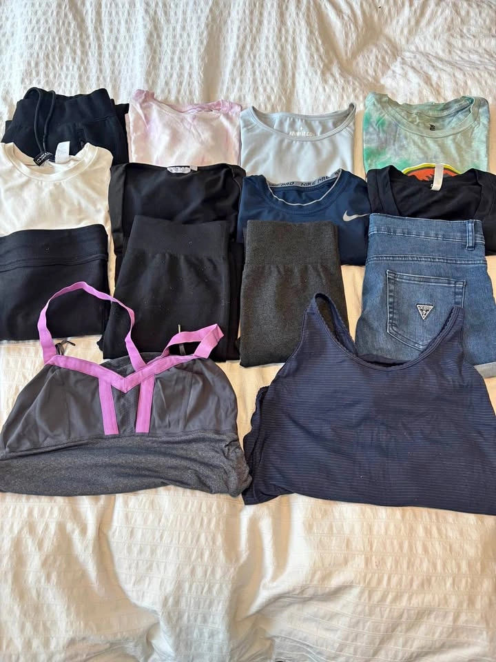 14 items that fit a XS/S women’s size, good for teens! Everything is in great condition or like new. Many name brands, such as Lululemon, Aritzia, Nike, H and M, Guess.