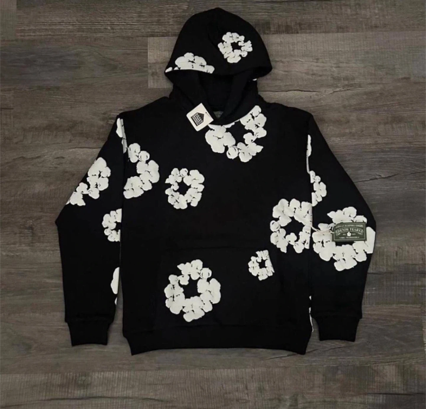 Denim Tears Black White Cotton Wreath Hoodie - All Sizes - NWT
