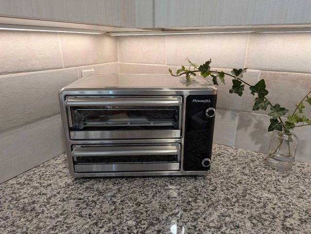 Air Fryer Oven Never used – still in the box! 2 ovens in one (cook mains & sides at the same time) Fits a 12” pizza Air fry, bake, broil, toast & more Smart sync so meals finish together Perfect for quick family meals. $100 or best offer :)