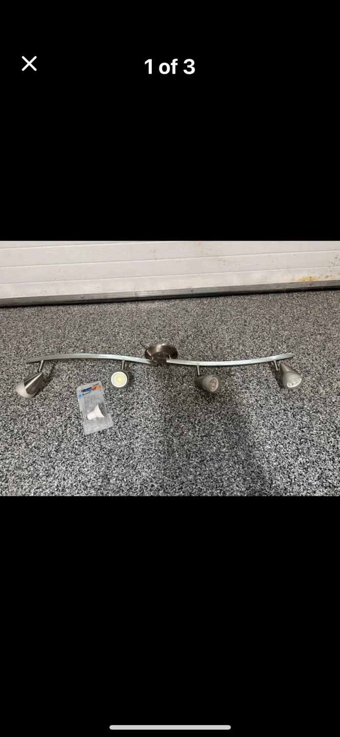 4-Light Track Lighting..1 available in excellent condition. One lightbulb burnt out possibly.. so including 1 extra bulb..38” long..10 dollars