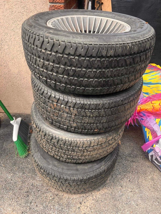 Vintage EagleGT/Goodyear Wingfoot Tires on Aluminum Rims P235/60/R14 Eagle GT Tires and P245/60/R14 Goodyear Wingfoot Tires. They were stored inside my grandmothers basement for over 40 years...excellent condition. Collectible. All 4 tires are on Aluminum rims originally from an 80's Ford Bronco.