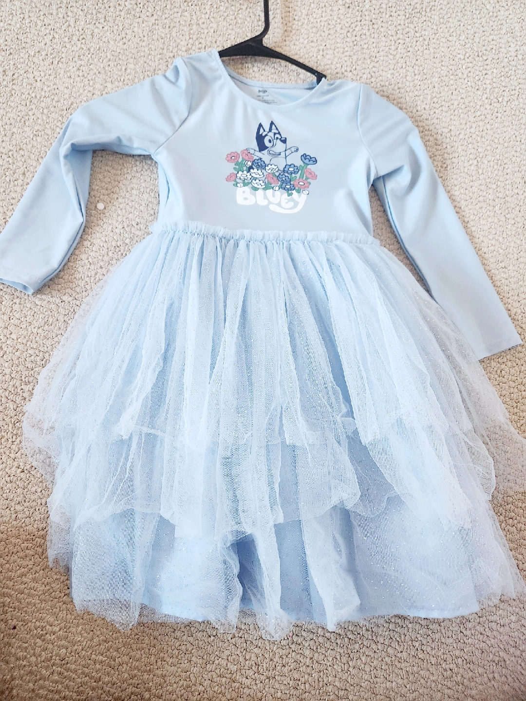 Buy & SellBluey Dress - Size 5Bluey Dress - Size 5$15A super cute light blue Bluey dress, perfect for any fan! It has long sleeves and a fun tulle skirt. Size 5ConditionLike newAge3-5 yearsWHERE TO MEET2 McQueen DrView MapSELLERverifiedsidhuMeadowvale650 reviews0 chats·0 favorites·4 viewsSEND CHAT TO SELLERHi sidhu! I’m interested in your listing.Hi sidhu! I’m interested in your listing.Get the Karrot app to chatSign In to chat
