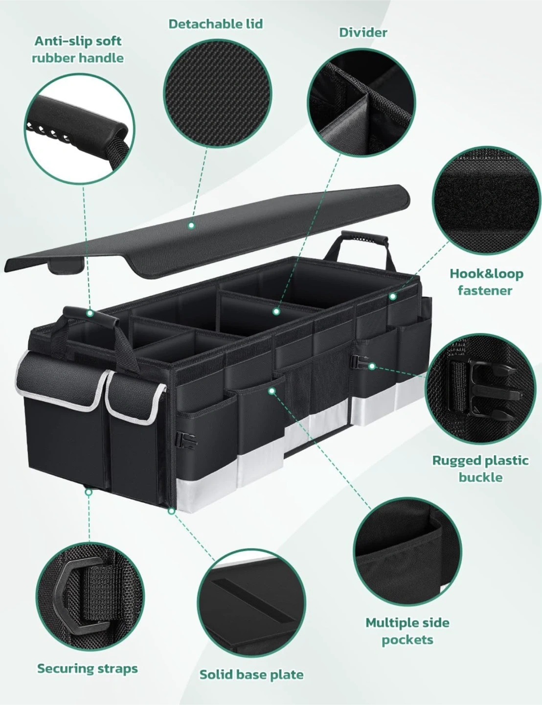Keep your car tidy with this Oasser car storage organizer! It boasts a 95L extra large capacity and is made of durable 1680D Oxford Cloth. It can handle a load-bearing capacity of 110lb without deformation.