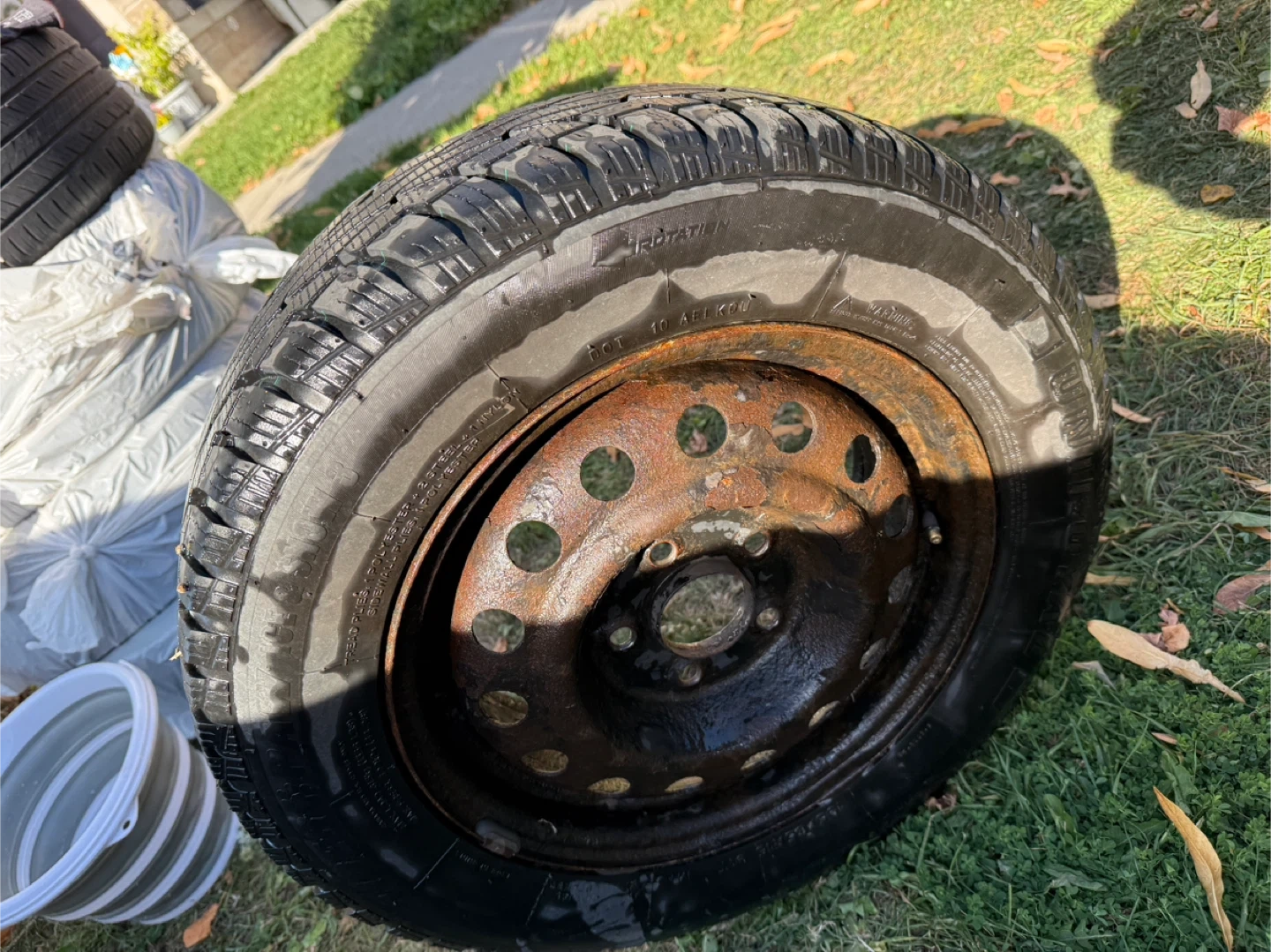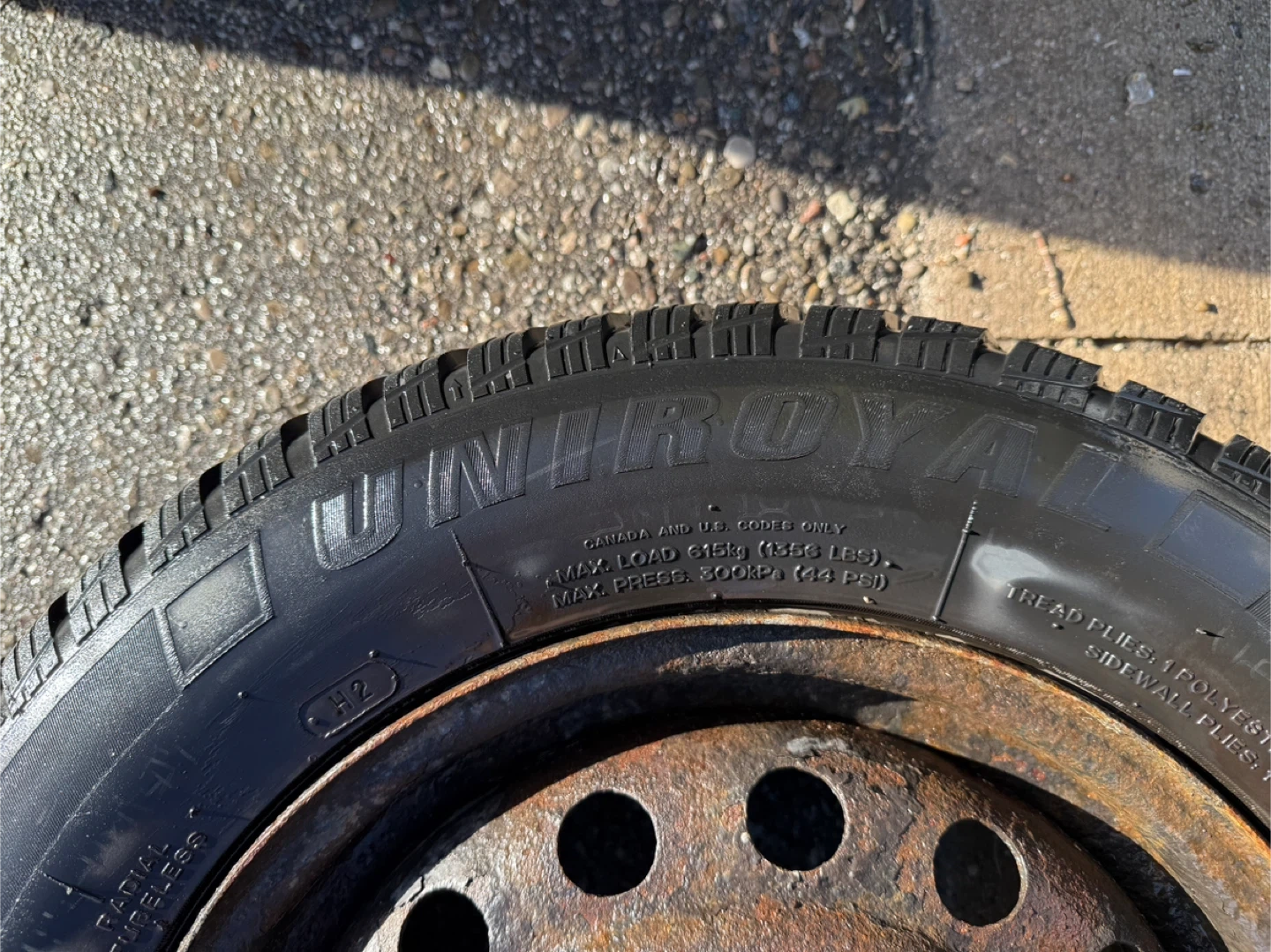 Selling two winter tires of Uniroyal(a michelin company) with rims, size 195/65R15 91T. It's a radial tubeless tires. A lot of thread left.