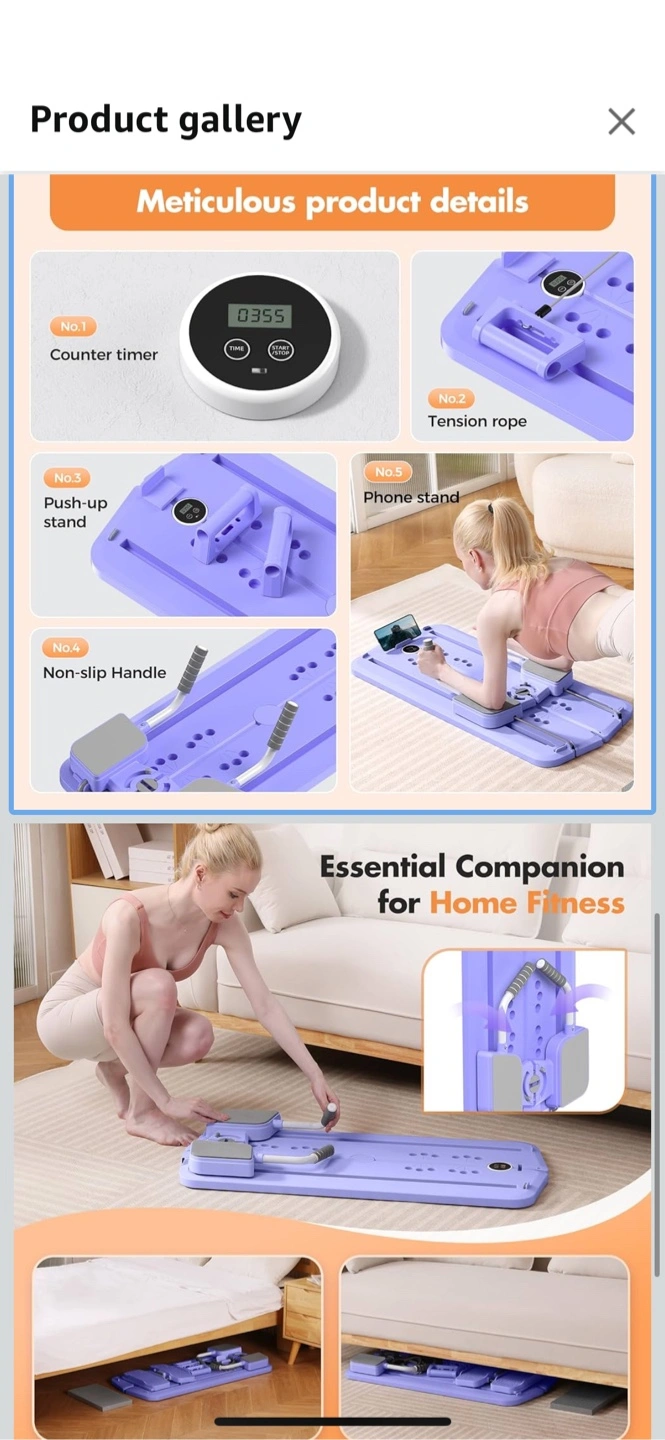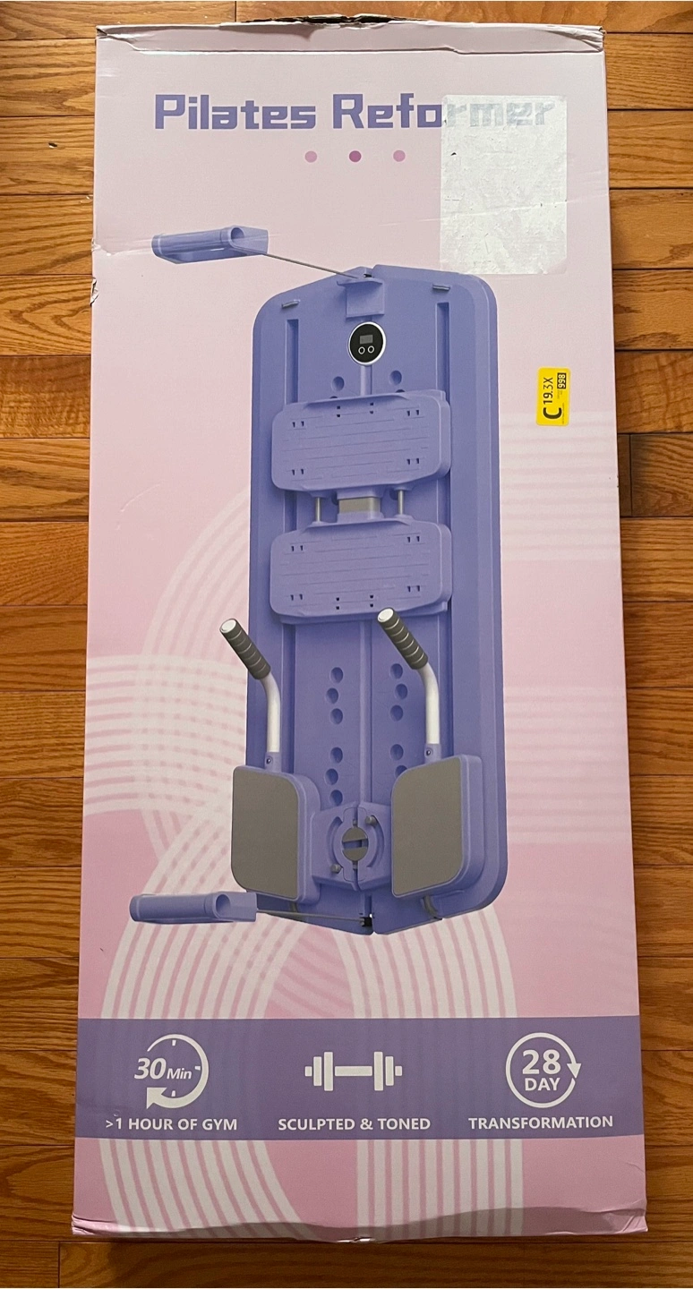 Get fit at home with this portable Pilates reformer machine! It's perfect for core training and full body workouts. The mauve colour is so cute! It includes a counter timer, tension rope, push-up stand, and phone stand. Great for abdominal training, waist and abdominal exercises, balance training, hip training, core training and yoga sticks for your back.