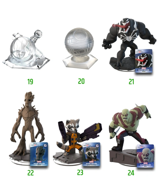 If you are seeing this Ad, then these items are still available This sale is for some very nice and clean original Disney Infinity Figures. PRICE IS FIRM Disney Infinity is an action-adventure sandbox toys-to-life video game series developed by Avalanche Software. The setting of the series is a giant customizable universe of imagination, known as the Toy Box, populated with toy versions of iconic Disney, Pixar, Marvel and Star Wars characters. 1 Mr. Incredible (The Incredibles) 1.0 - INF-1000022 - $ 7.00 2 Sulley (Monsters, Inc.) 1.0 - INF-1000002 - $ 7.00 3 Mike Wazowski (Monsters, Inc.) 1.0 - INF-1000010 - $ 10 4 Anna (Frozen) 1.0 - INF-1000024 - $ 7.00 5 Elsa (Frozen) 1.0 - INF-1000025 - $ 7.00 6 Rapunzel (Repunzel) 1.0 - INF-1000023 - $ 7.00 7 Thor (Marvel) 2.0 - INF-1000103 - $ 7.00 8 Black Widow (The Avengers) 2.0 - INF-1000109 - $ 10.00 9 Jack Sparrow (Pirates of the Caribbean) 1.0 - INF-1000003 - $ 10.00 10 Hector Barbossa (Pirates of the Caribbean) 1.0 - INF-1000012 - $ 7.00 11 Davy Jones (Pirates of the Caribbean) 1.0 - INF-1000013 - $ 10.00 12 Anakin Skywalker (Star Wars: Twilight of the Republic) 3.0 - INF-1000200 - $ 10.00 13 Merida (Brave) 2.0 - INF-1000119 - $ 7.00 14 Agent P (Phineas and Ferb) 1.0 - INF-1000027 - $ 10.00 15 Tinkerbell (Disney Fairies) 2.0 - INF-1000120 - SOLD 16 Randy (Randall Boggs) (Monsters Inc.) 1.0 - INF-1000014 - $ 7.00 17 Ironman (Marvel) 2.0 - INF-1000102 - $ 10.00 18 Nick Fury (Spiderman) 2.0 - INF-1000108 - $ 10.00 19 Star Wars: Twilight of the Republic Crystal 3.0 - INF-2000202 - $ 7.00 20 Star Wars: Rise Against the Empire Crystal Death Star 3.0 - INF-2000203 - $ 10.00 21 Venom (Spiderman) 2.0 (with Digital Card) - INF-1000115 - $ 10.00 22 Groot (Guardians of the Galaxy) 2.0 (with Digital Card) - INF-1000104 - $ 7.00 23 Rocket (Guardians of the Galaxy) 2.0 (with Digital Card) - INF-1000105 - $ 7.00 24 Drax (Guardians of the Galaxy) 2.0 (with Digital Card) - INF-1000111 - $ 7.00 25 Captain America (Avengers) 2.0 (with Digital Card) - INF-1000100 - $ 15.00 26 Hulk (Marvel) - 2.0 (with Digital Card) - INF-1000101 - $ 15.00 27 Hawkeye (The Avengers) 2.0 (with Digital Card) - INF-1000110 - $ 12.00 28 Ronan (Guardians of the Galaxy) 2.0 (with Digital Card) - INF-1000125 - $ 12.00 29 Iron Fist (Spiderman) 2.0 (with Digital Card) - INF-1000113 - $15.00 30 Nova (Spiderman) 2.0 - INF-1000114 - $ 7.00 31 Star-Lord (Guardians of the Galaxy) 2.0 - INF-1000106 - $ 10.00 32 Gamora (Guardians of the Galaxy) 2.0 - INF-1000112 - $ 10.00 33 Avengers Crystal Tower (Avengers) 2.0 - INF-2000100 - $ 7.00 34 Guardians of the Galaxy Crystal (Guardians of the Galaxy) 2.0 - INF-2000102 - $ 15.00 35 Spiderman Crystal (Spiderman) 2.0 - INF-2000101 - $ 15.00 Pick-up in Pickering ONLY These items come from a smoke-free home.