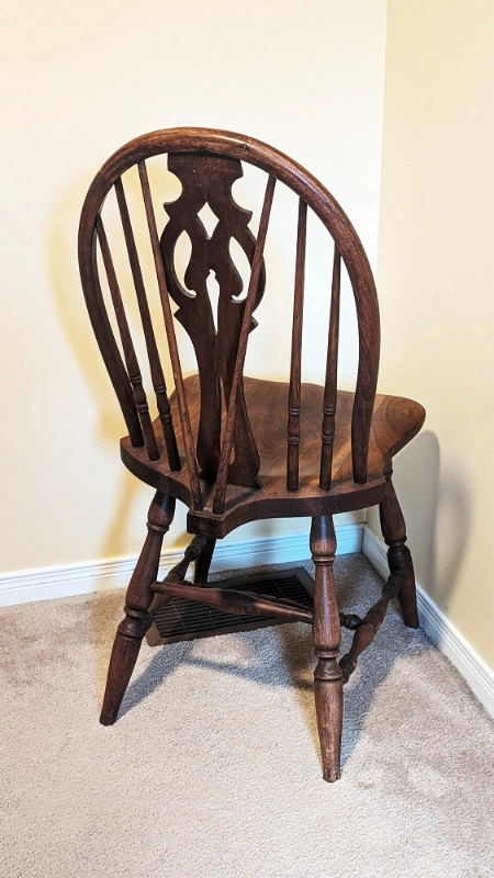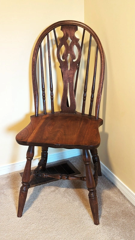 If you are seeing this Ad, then this item is still available This sale is for 1 very nice and clean Vintage Solid Wood "Bow Back" Windsor Side Chair with Brace made by The Owen Sound Chair Company Ltd. This beautiful piece still has the Owen Sound Chair Company shield on the bottom, as well as a stamped item number 883. This well-loved chair would make a wonderful decorator piece and easily suits any decor. The Owen Sound Chair Company Ltd. was in business from 1912 until the late 1930's. They amalgamated with The North American Furniture Company to become Harris Furniture and Chair Company. Wear is consistent with age and use. Dimensions: • 37" H x 16.5" W • Seat Height: 17.5" Pick-up in Pickering ONLY This item comes from a smoke-free home.