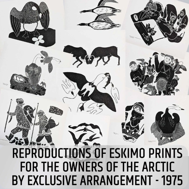 If you are seeing this Ad, then this item is still available This sale is for 1 set of very nice and clean Reproductions of Eskimo Prints For the Owners of The Arctic by Exclusive Arrangement. Illustrated portfolio comprising of eleven black-and-white prints of unique art by Sivuak, Syollie Awp, Kanayook, Talirunili, and Juanisialuk. Each print measures 11" x 8.5". Lightest rubbing to the portfolio extremities, all prints are without blemishes. Publisher: La Fédération des Coopératives du Nouveau Québec N.D. [Circa 1975], Levis, Quebec, Canada Publication Date: 1975 Pick-up in Pickering ONLY These items come from a smoke-free home.