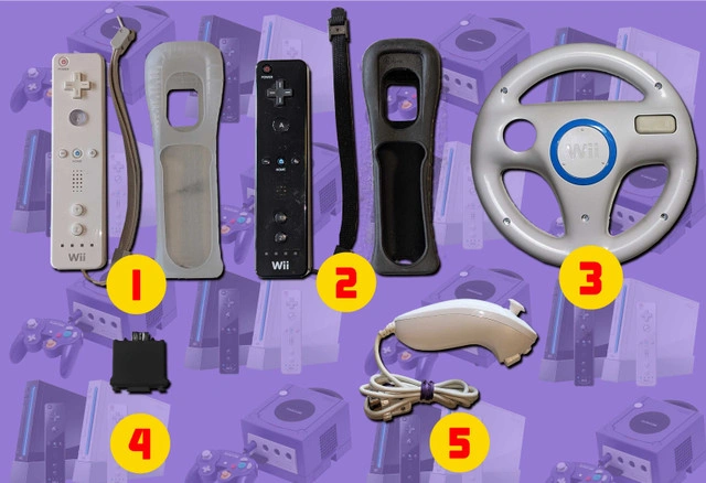 If you are seeing this Ad, then these items are still available This sale is for some very nice and clean original Nintendo Wii Controllers and Accessories. All prices are firm and as marked. 1. Original Wiimote Controller (White) with Protective Skin - $25 2. Original Wiimote Controller (Black) with Protective Skin - $25 3. Original Wii Steering Wheel - $15 4. Original Wii Motion Plus Adapter (Black) for Wii Remote - $15 5. Original Wii Nunchuck Controller - $15 Pick-up in Pickering ONLY These items come from a smoke-free home.