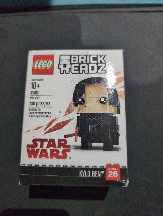 42Selling a Lego Brickheadz Kylo Ren set, number 41603, complete with 130 pieces to build your own blocky version of the dark warrior. This set has been previously enjoyed and is in good condition, ready for a new home among your Star Wars collectibles! * Model Number: 41603 * Piece Count: 130 * Series: Brickheadz, Star Wars This retired set is a gem for any Star Wars or Lego enthusiast. This item is available if the ad is still up. May the Force be with you!