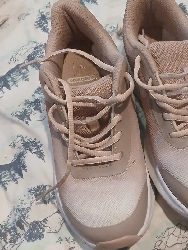 Selling a pair of pink sneakers that feature odor control technology. They're in used condition, as you can see from the photos. These would be great for everyday wear or light exercise