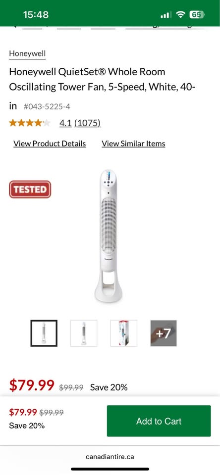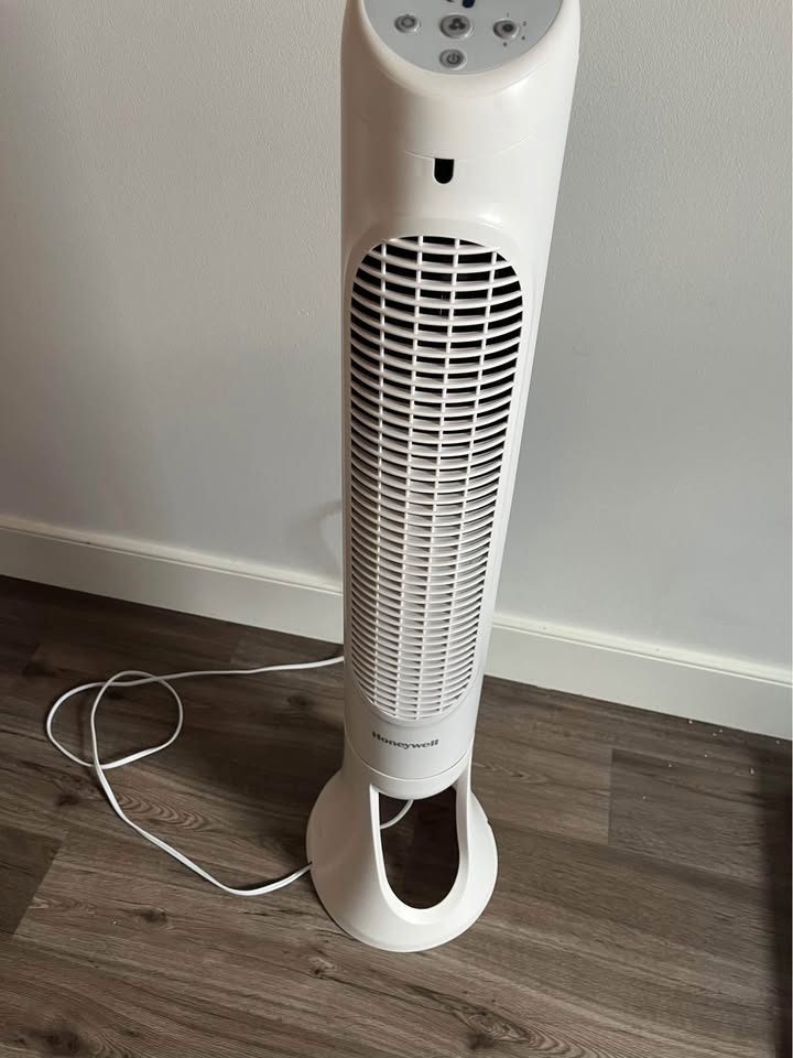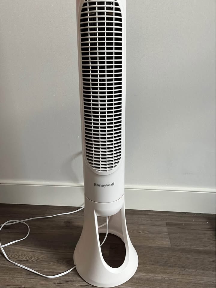 Tower fan, 1 year old. Discounted price due to clicking noise when fan rotates.