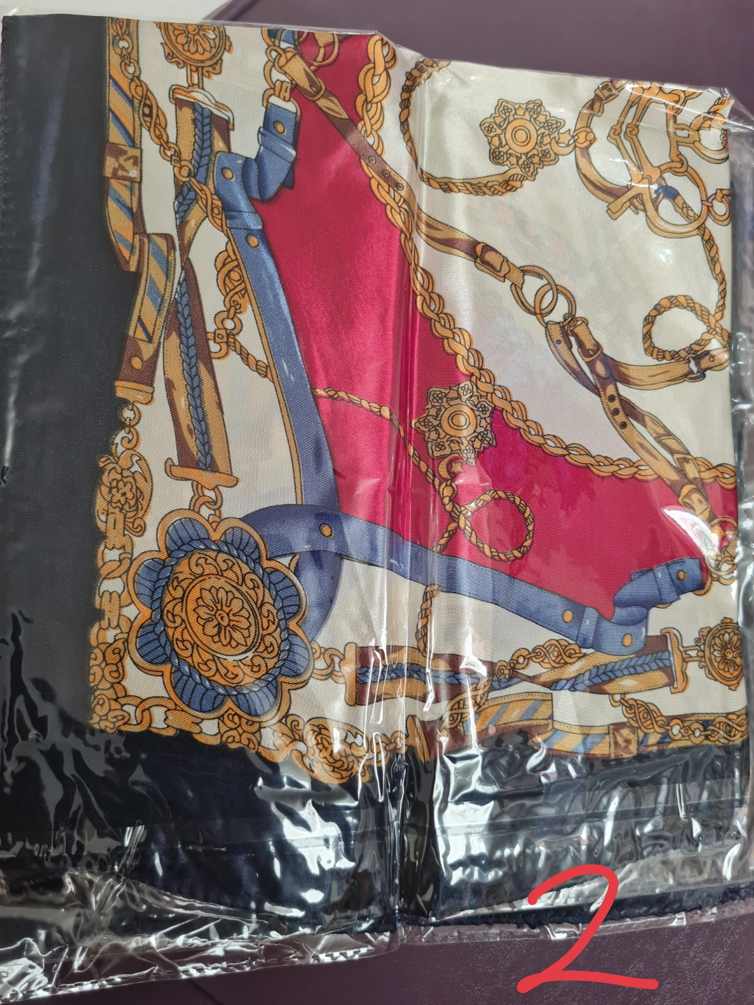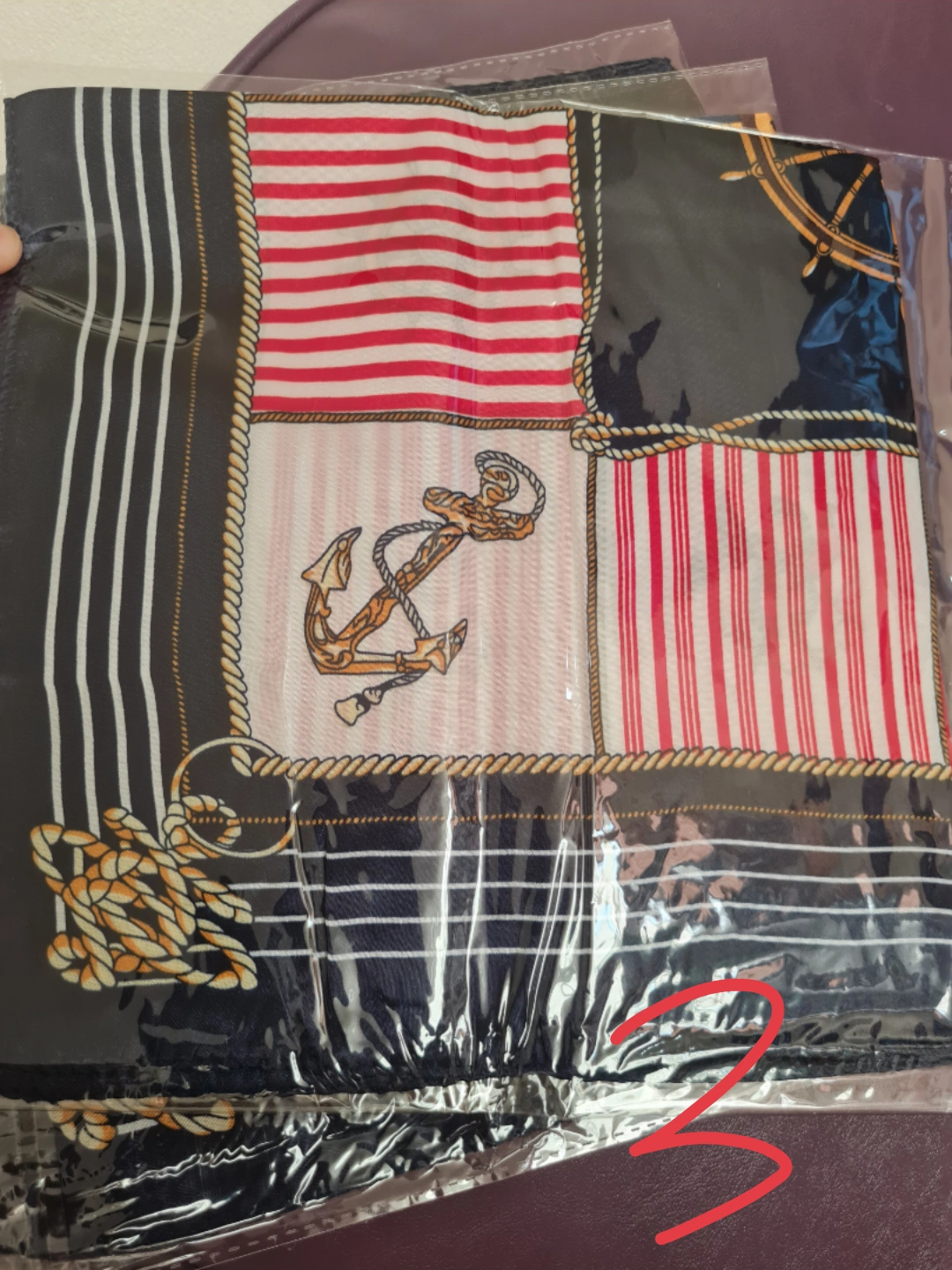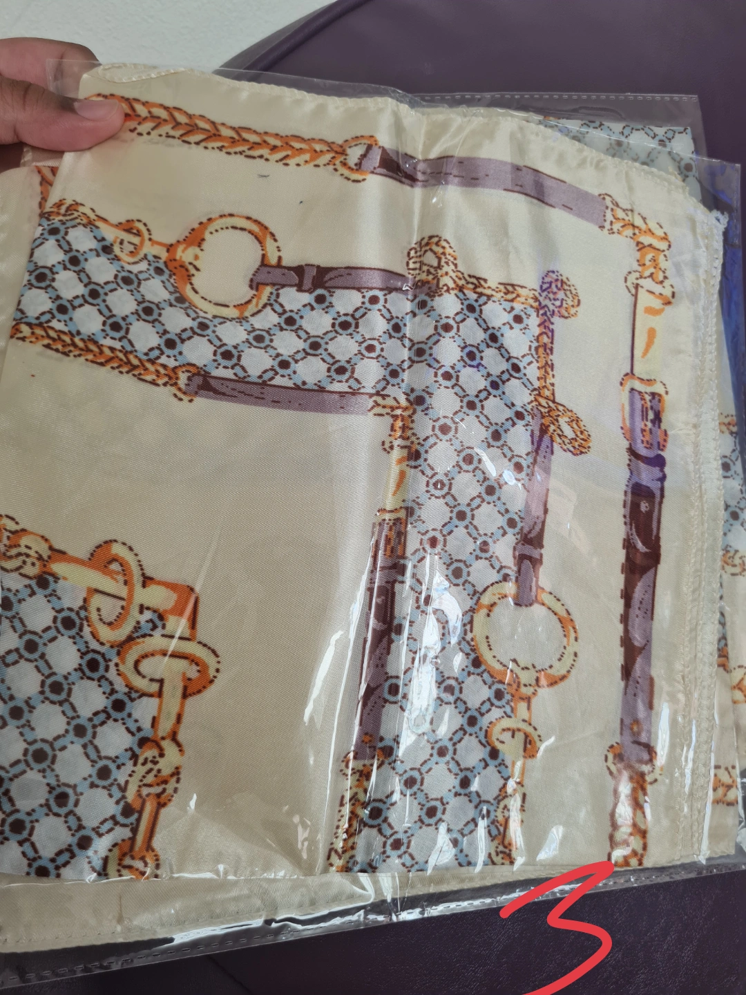 Selling a set of assorted patterned scarves. These scarves feature different designs, including floral, nautical, and chain patterns. They are still in their original packaging. Stated in the pickers the quantity in that style Msg with a pic of the style you want 19.7 x 19.7 in $1 each $3 for 5