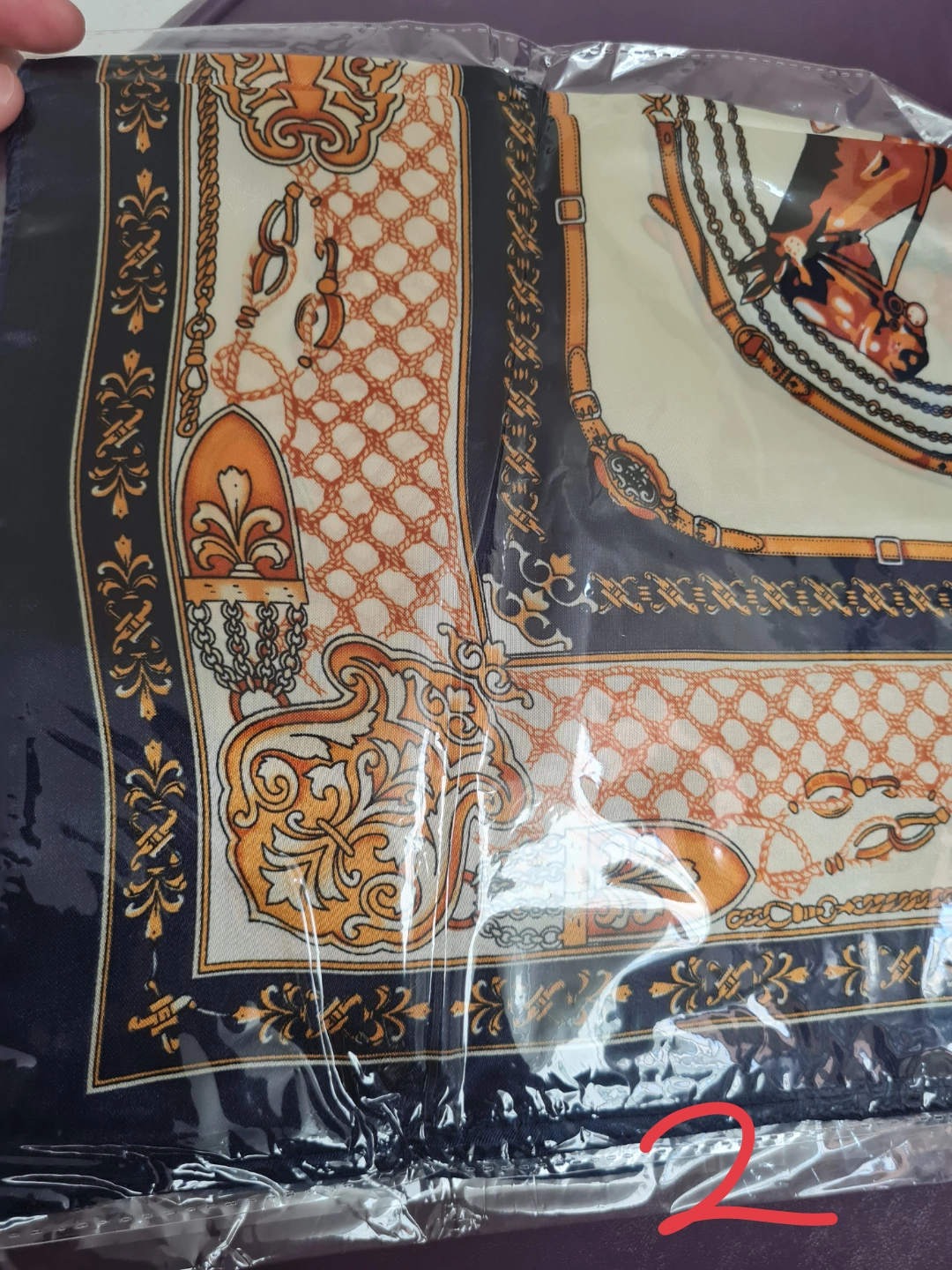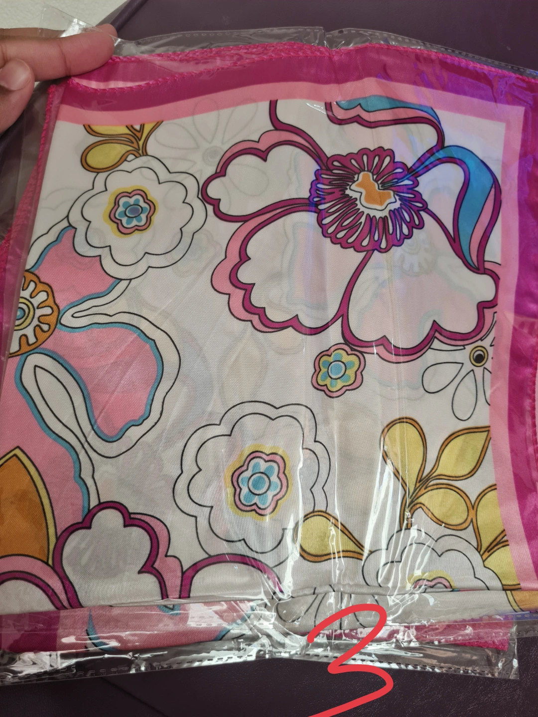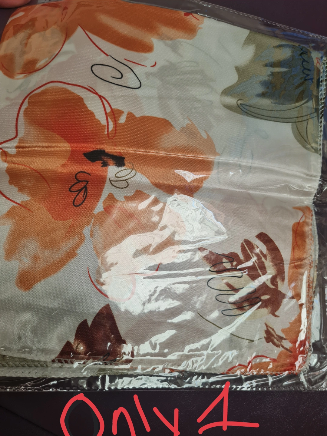 Selling a set of assorted patterned scarves. These scarves feature different designs, including floral, nautical, and chain patterns. They are still in their original packaging. Stated in the pickers the quantity in that style Msg with a pic of the style you want 19.7 x 19.7 in $1 each $3 for 5