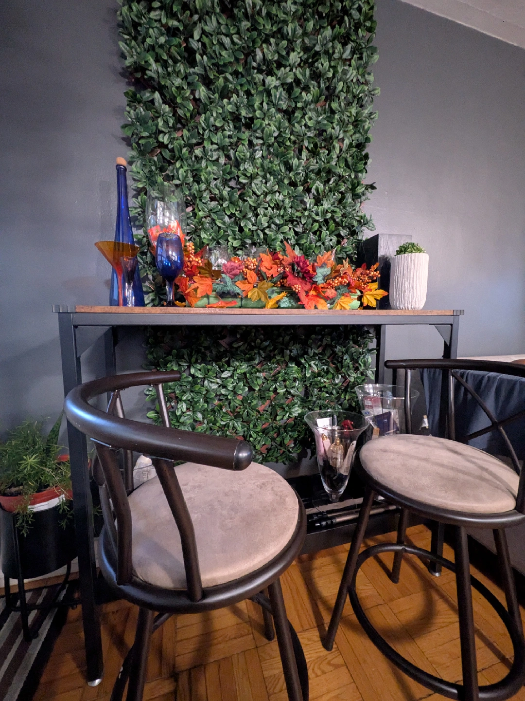 Selling a pair of bar stools. They're in good condition and would look great in any kitchen or bar area! The seats are a neutral colour and the frames are a dark brown.