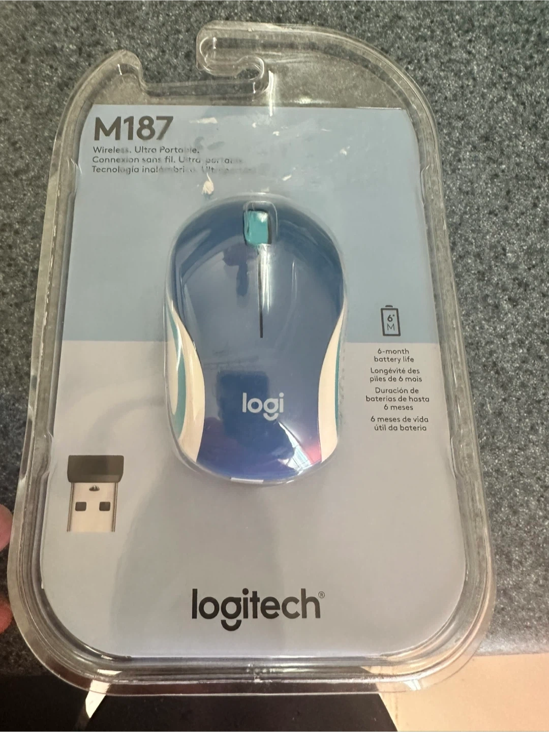 Selling a brand new Logitech M187 Wireless Mouse in blue! It's ultra portable and provides a strong, reliable wireless connection up to 10 meters. Enjoy advanced optical tracking and a long battery life of up to 6 months. Comes in its original packaging!