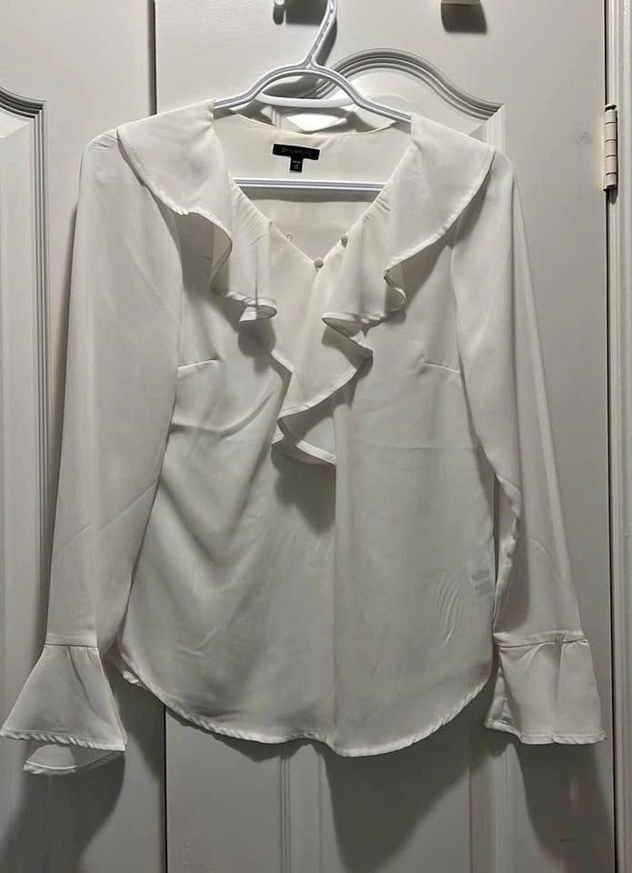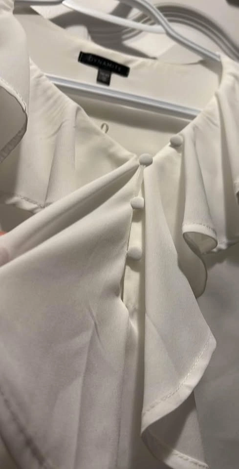 Buy & SellDynamite XS white blouseDynamite XS white blouse$20Only worn once. White semi-sheer blouse with details and buttons on the middle.0 chats·0 favorites·5 viewsSELLERverifiedLisaDowntown Markham19011 reviewsWHERE TO MEETCheck Location