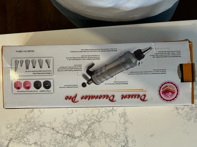 I'm offering a brand new Dessert Decorator Pro, a fantastic tool for all your cake and dessert decorating needs. This kit includes a stainless steel cake syringe with 7 nozzles, making it perfect for creating beautiful designs with icing, cream, and more. It's a versatile addition to any kitchen, whether you're a professional baker or just love to decorate desserts as a hobby.