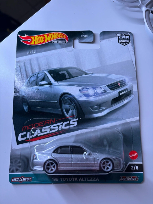 I'm offering a new Hot Wheels Premium '98 Toyota Altezza from the Modern Classics series, a must-have for collectors! This die-cast car features metal/metal construction and Real Riders tires. Mint in package. * Series: Modern Classics * Make: Toyota * Model: Altezza * Scale: 1/64 I've checked around Kijiji, and similar models typically sell between $20 and $30, placing this pristine piece at a great value. If the ad is up, it's still available—no need to ask, just ready to rev up and roll out!