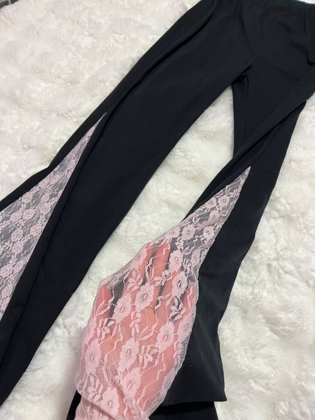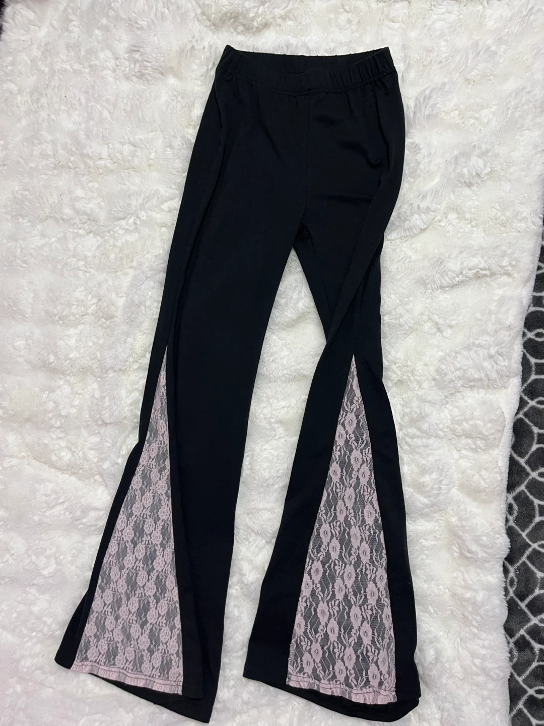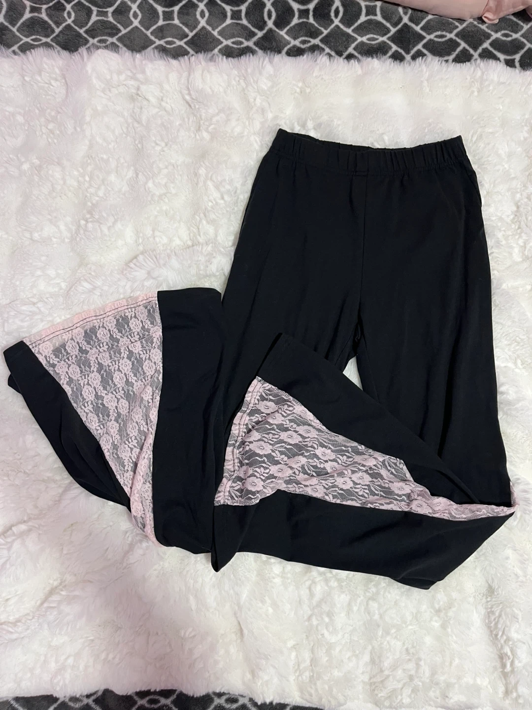 Selling a pair of stylish black flare pants featuring delicate lace detailing! These pants are perfect for adding a touch of elegance to any outfit. They're in great condition and ready for a new home. Feel free to message me with any questions!💕🫶🏻