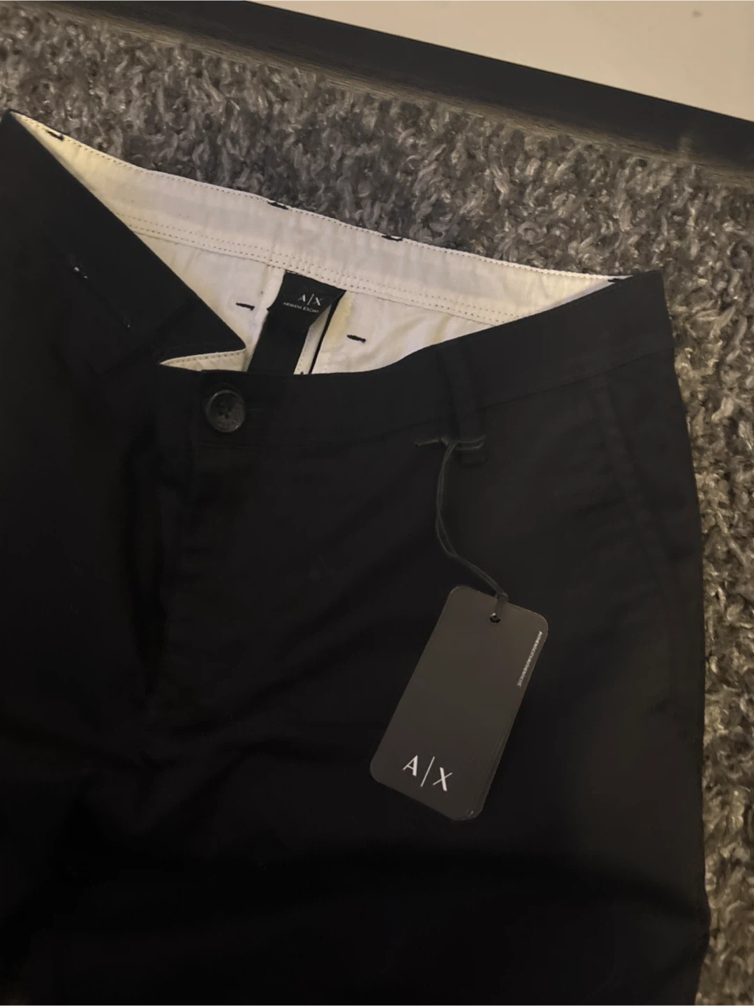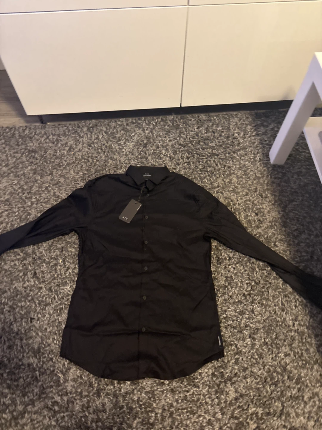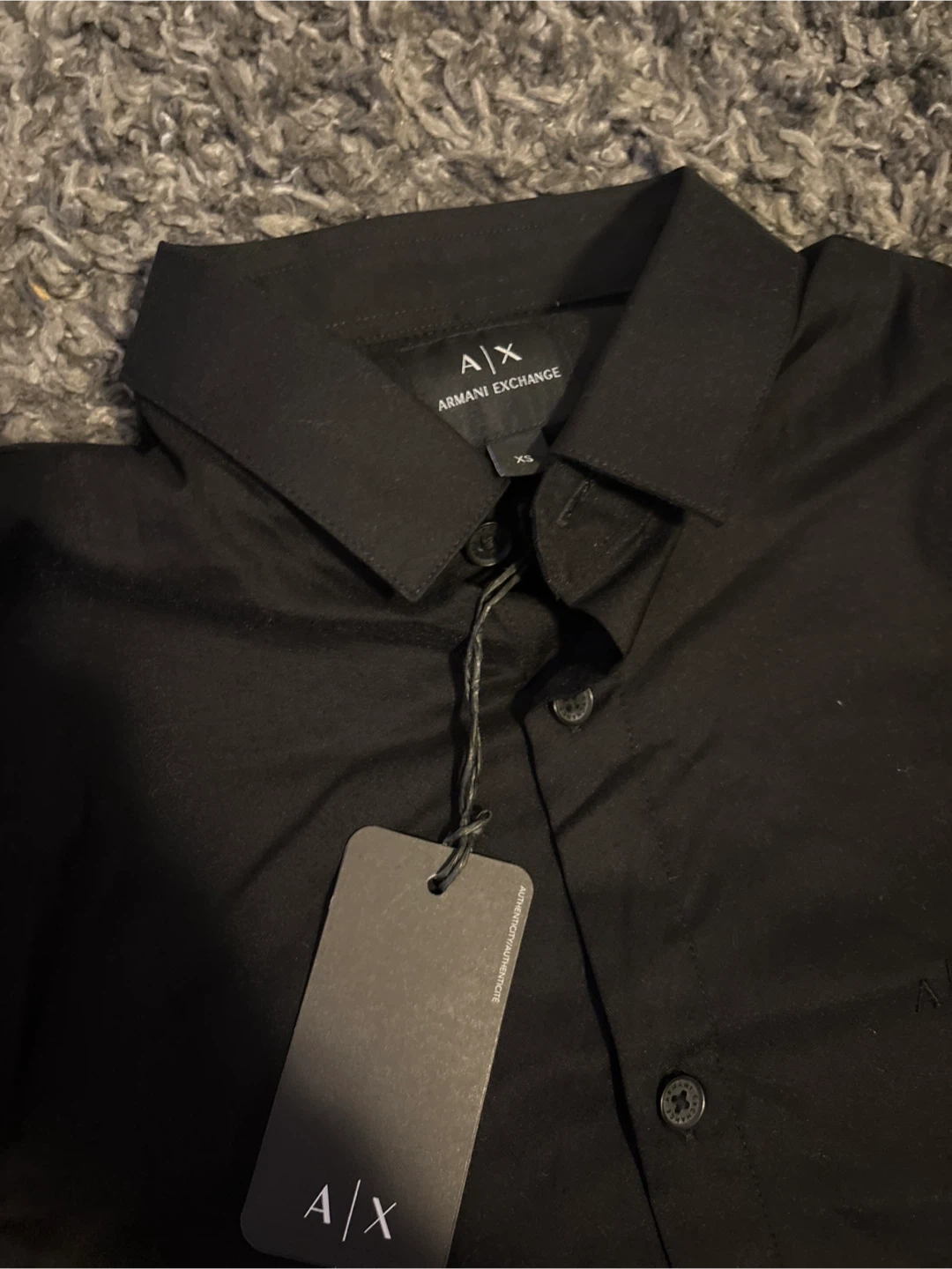 Selling a set of Armani Exchange clothing! Included is a black button-up shirt and a pair of pants, both in size XS. Both items are in great condition and ready for a new home