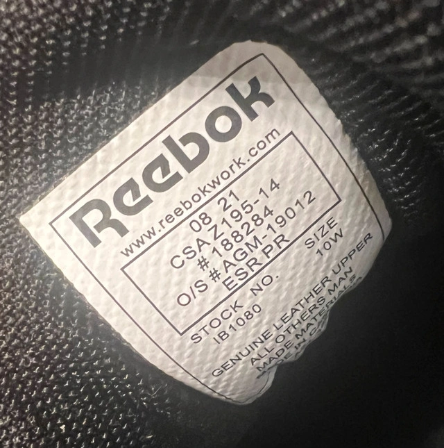 Reebok Work Fusion Formidable IB1080 Men's Composite Toe Athletic Work Shoe Size 10w. Worn once. Not comfortable for me. With a Floatride Energy foam midsole, the Fusion Formidable Work provides cushioning with a kick. Floatride Energy foam is supportive, highly responsive, and lighter than traditional EVA. The Formidable all leather upper takes on the most aggressive work environments. The slip-resistant rubber outsole features visual foot mapping for adaptive, multi-dimensional flexibility. Weight: 477 grams per size 9 shoe. Certified grade 1 composite toe, composite plate, Electric Shock Resistant, Metal Free Retail $185 plus tax