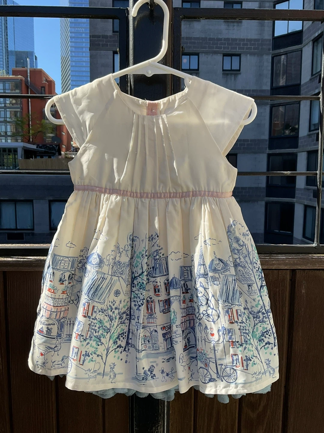 This adorable baby dress from M&S is in excellent condition! It features a charming blue mix design with a cute Parisian theme on the skirt. The size is for babies aged 6-9 months (9kg/20lb, height 72cm/28½in). Perfect for your little one!