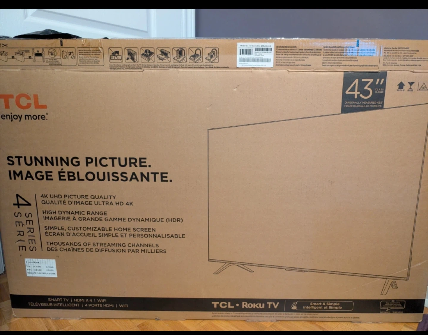 Selling a TV, still-in-box TCL 4-Series 43-inch 4K UHD HDR Smart Roku TV!