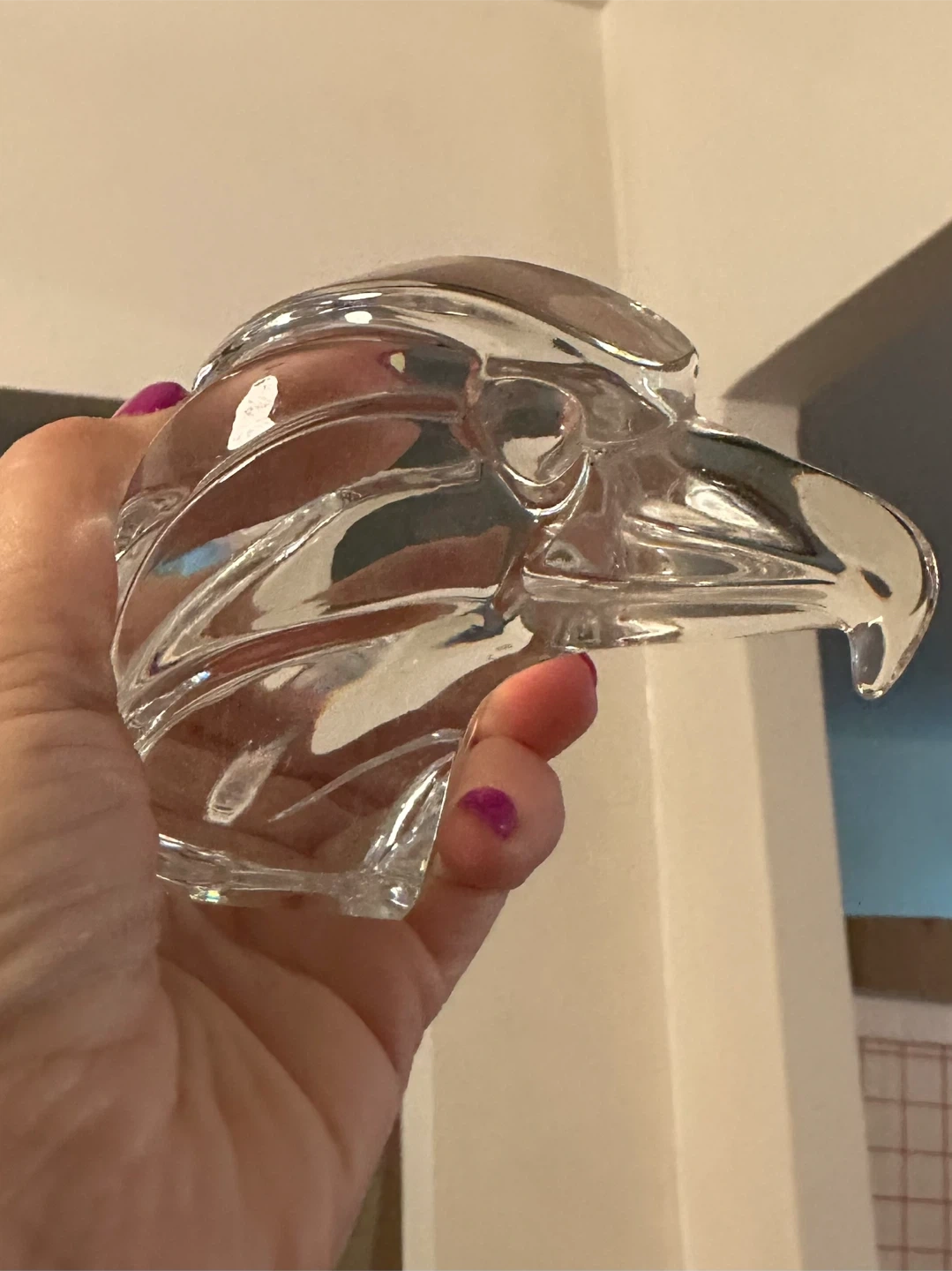 153This is a J.G. Durand crystal eagle head figurine made in France. It’s in perfect condition. It would make a great decorative piece for your home or office. Its unique design is sure to catch the eye. I happily accept cash upon pickup.