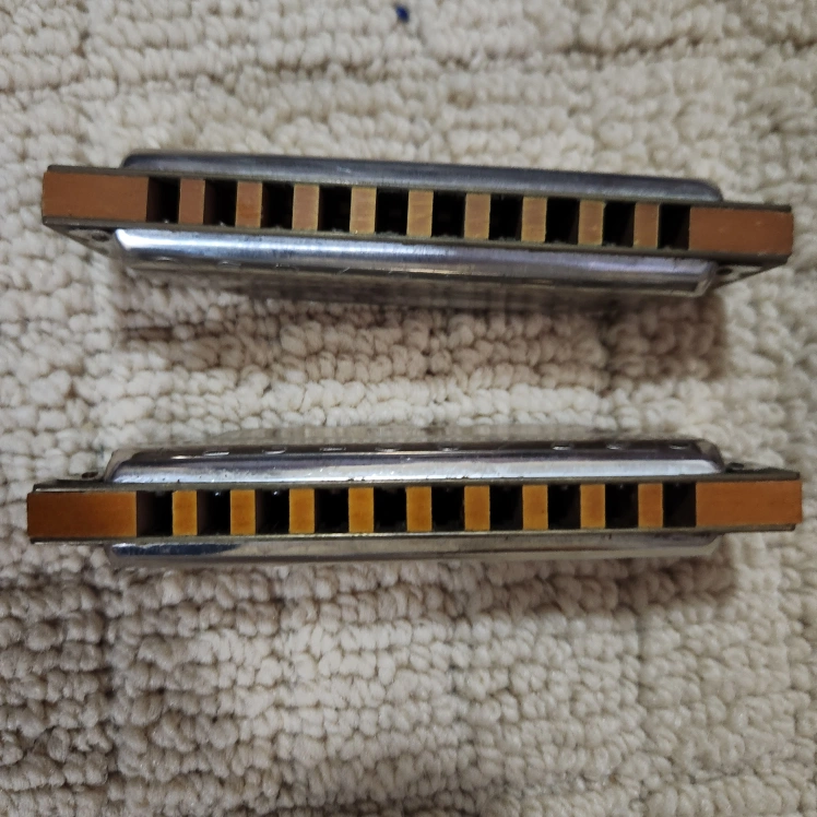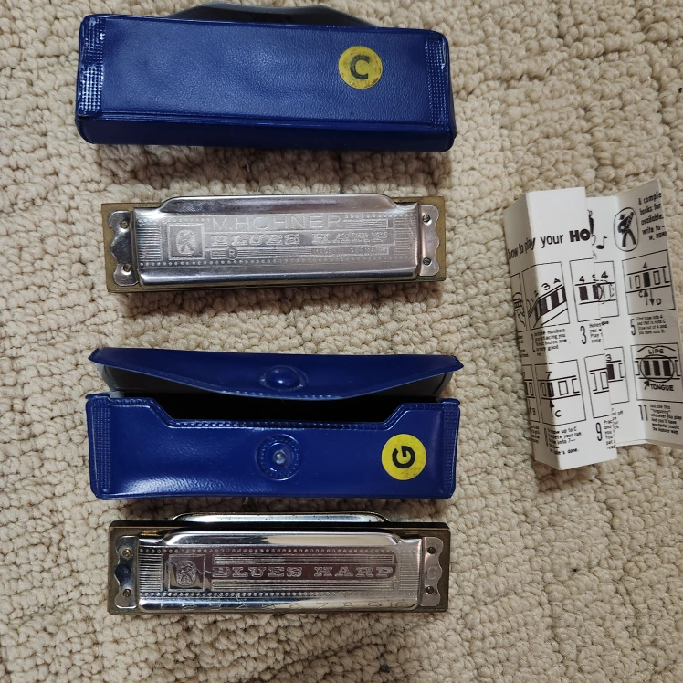 Selling a set of Hohner Blues Harp harmonicas! They come with their original cases and an instruction booklet. Great for anyone looking to learn, play or add to their collection