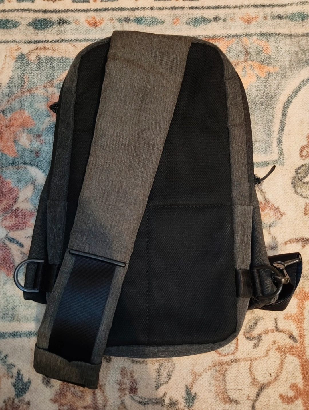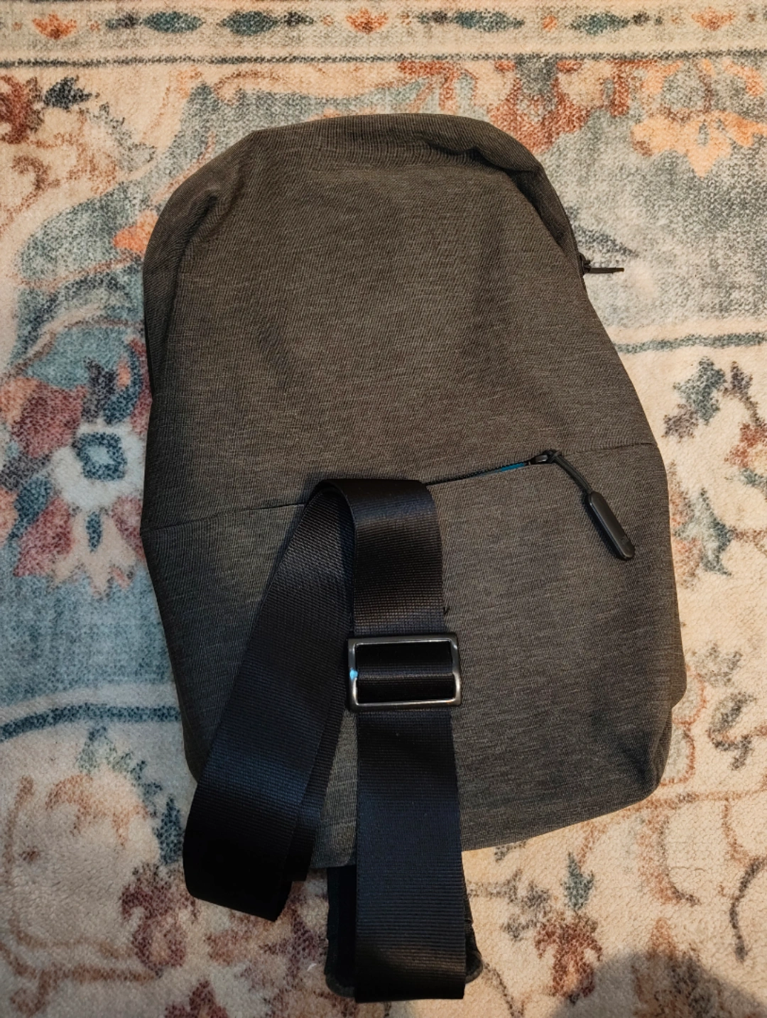 Selling a grey sling bag. It's in great condition and ready for a new home! It's perfect for carrying your essentials while keeping your hands free