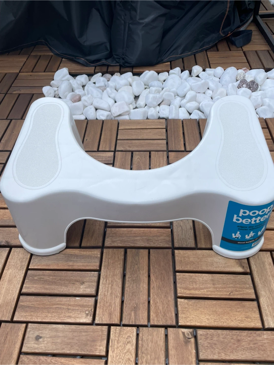 This stool is designed to help you achieve a more natural posture while you go! It's in great condition and ready to use in your bathroom. It features a sturdy design and helps promote better digestive health