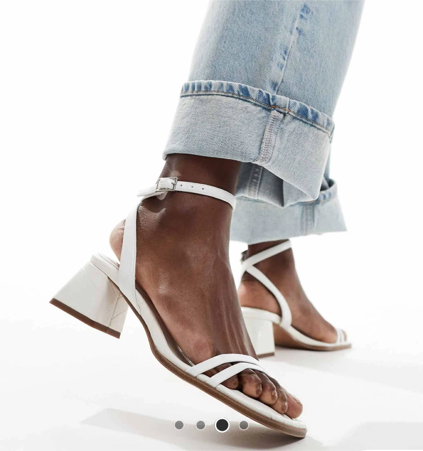 Selling a pair of white heeled sandals from ASOS. These sandals are perfect for dressing up any outfit!