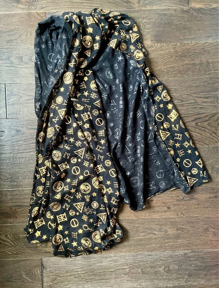Fantastic Beasts Harry Potter gold foil viscose scarf, Loot Crate exclusive.