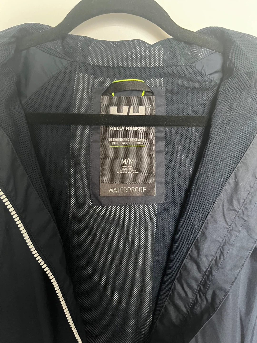 Selling a Helly Hansen waterproof jacket in size M. It's in excellent condition and perfect for protecting you from the elements on a hike or those windy and rainy days in the city! This lightweight jacket features an adjustable hood and a stylish design with the Helly Hansen logo on the front and back. It's a regular fit and designed to keep you dry and comfortable.