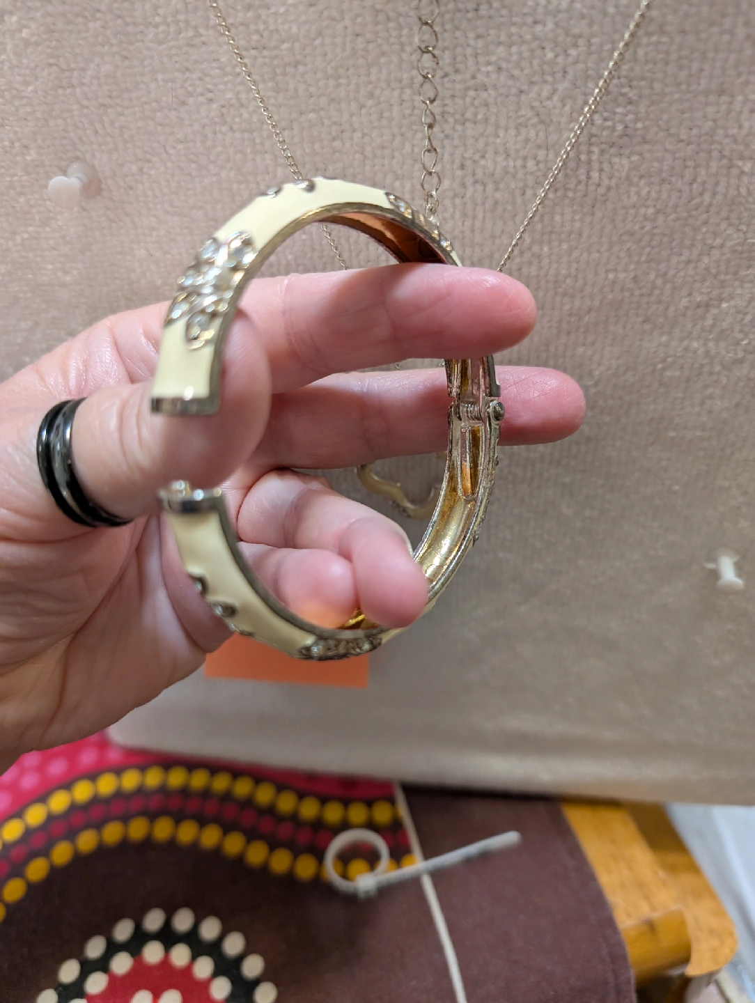 Necklace, Earrings and Bangle Bracelet Set - Cream plus extras