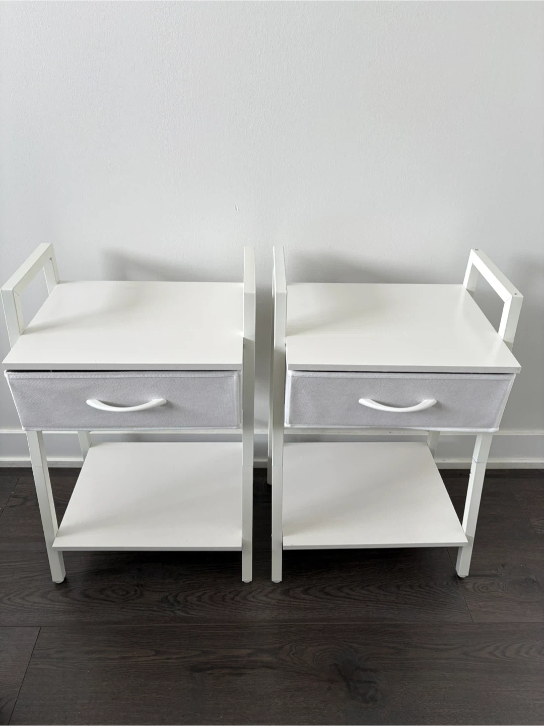 Selling a set of 2 white nightstands measuring 24” (H) x 15.7” (L) x 11.7” (W)