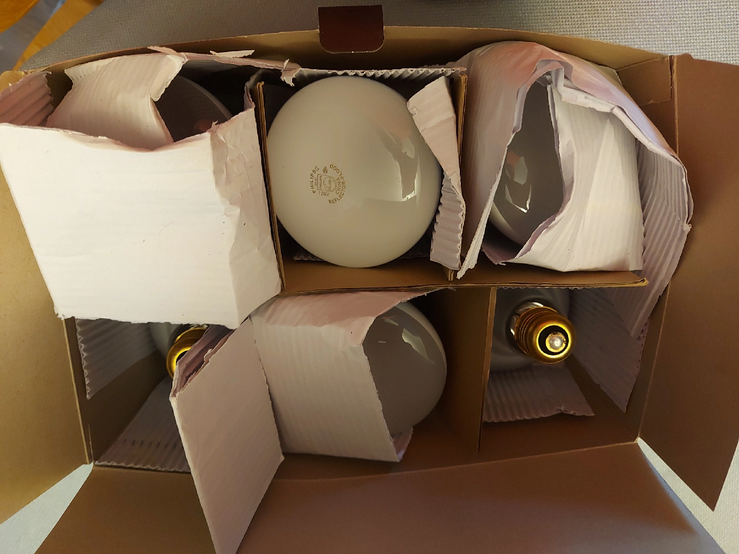 Box of 6, 65w incandescent floodlights. Box was opened but bulbs are new... they do not fit the light fixtures in our new place. Cash only, porch pickup, Lakeport and Linwell roads.