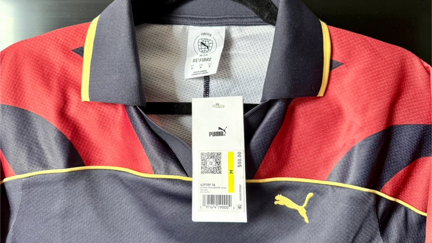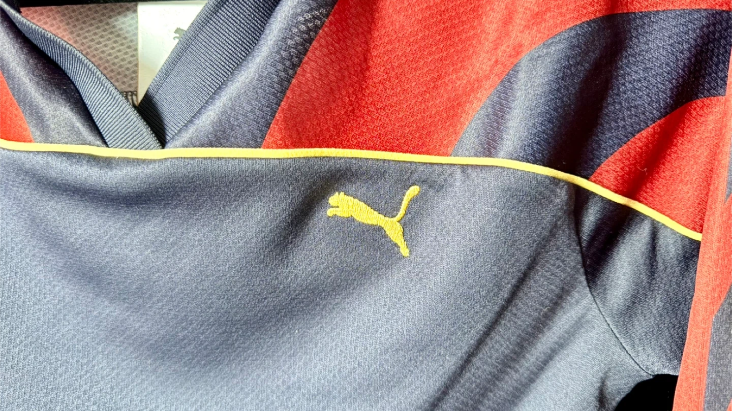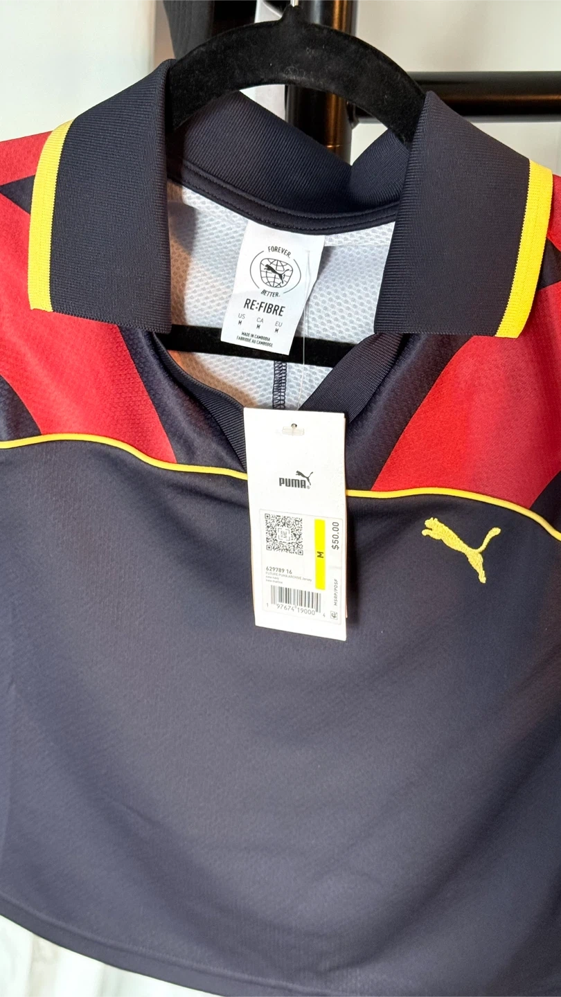 This Puma ROAD TO UNITY FOOTBALL BABY TEE UNISEX – Long sleeve crop top features a unique design with red and black accents and yellow piping. It's a stylish and sporty piece that's perfect for workouts or casual wear. The Puma logo is embroidered on the chest.