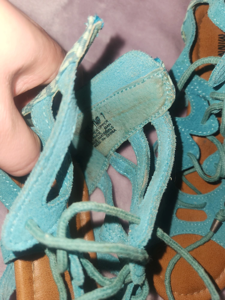 just selling them cause I know longer need them nothing is wrong with them at all used 3 times, the last heels have that black on it as I put grippers to not slip not from ware at all.