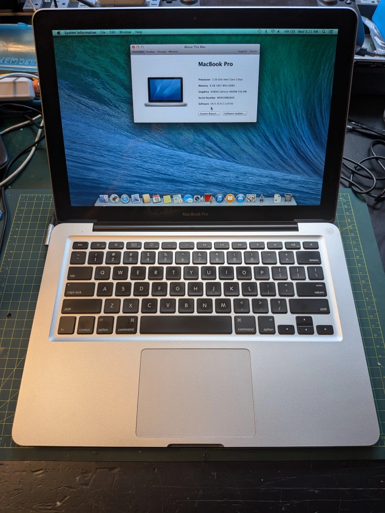 Works well. RAM has been upgraded to 8GB so it's quite usable today. Currently running OS X Mavericks but can be upgraded much further. Good budget laptop.