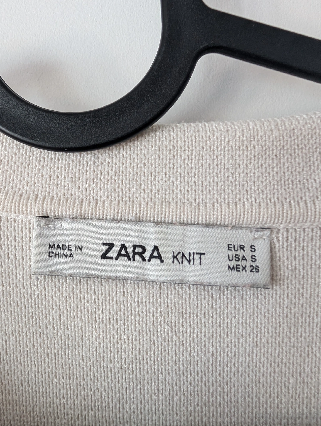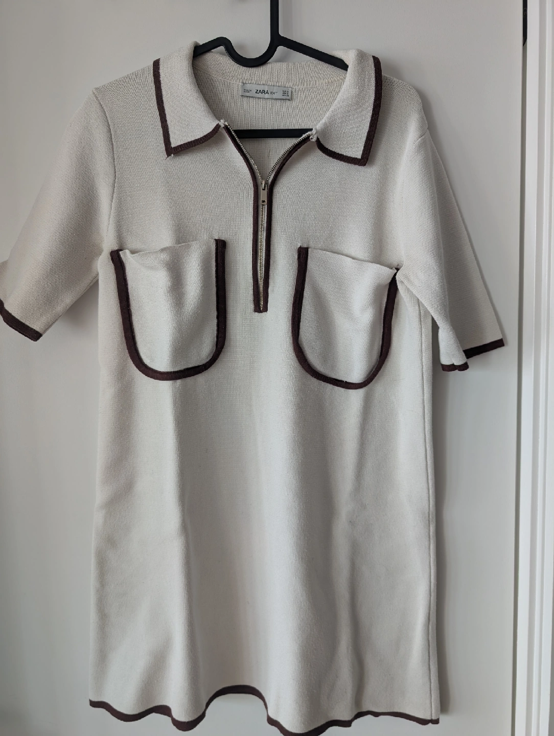 A cute Zara Knit dress in cream colour! It's a size small and features a zipper and two front pockets. Perfect for a casual day out or a relaxed evening.