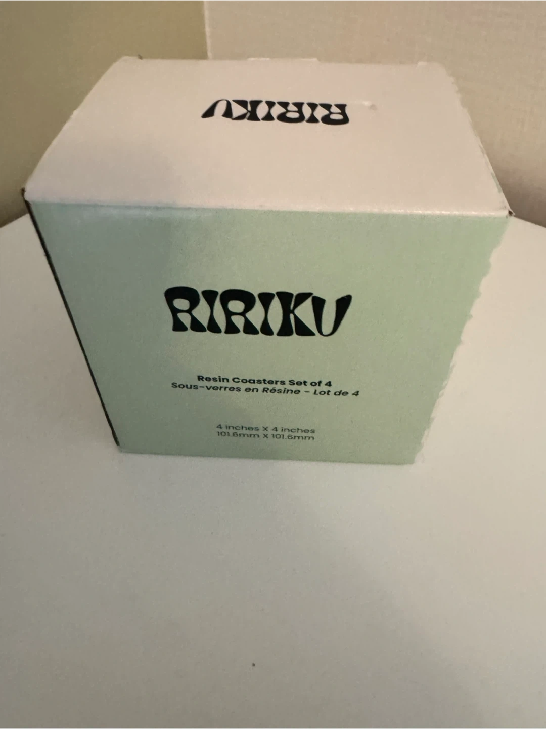 117Selling a brand new set of RIRIKU resin coasters! The set includes 4 coasters, each measuring 4 inches x 4 inches (101.6mm x 101.6mm). They come in the original box, ready to add a touch of elegance to your home. Pick up in Tuscany. No holds without a deposit.