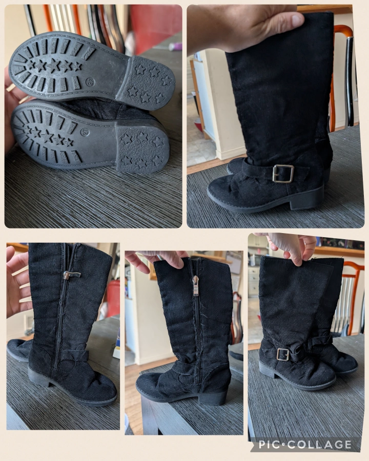 Here are some cute black corduroy boots in a size 10! They feature a buckle detail and a side zipper for easy on and off. Perfect for fall and winter!