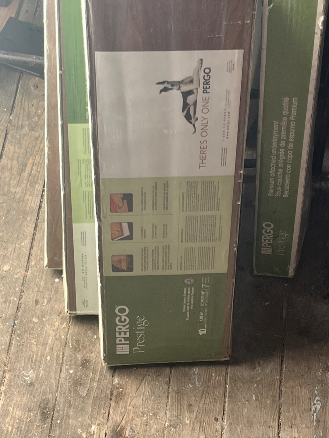 I'm selling three unopened boxes of Pergo laminate flooring, perfect for updating any room in your home! This high-quality flooring is durable, easy to install, and adds a touch of elegance to any space. Additional specs: * Brand: Pergo * Condition: New, still in original packaging. Looking at similar listings, I've priced them at the higher end of that range. If the ad is up, it's available. Happy renovating! Open to offers and trades!