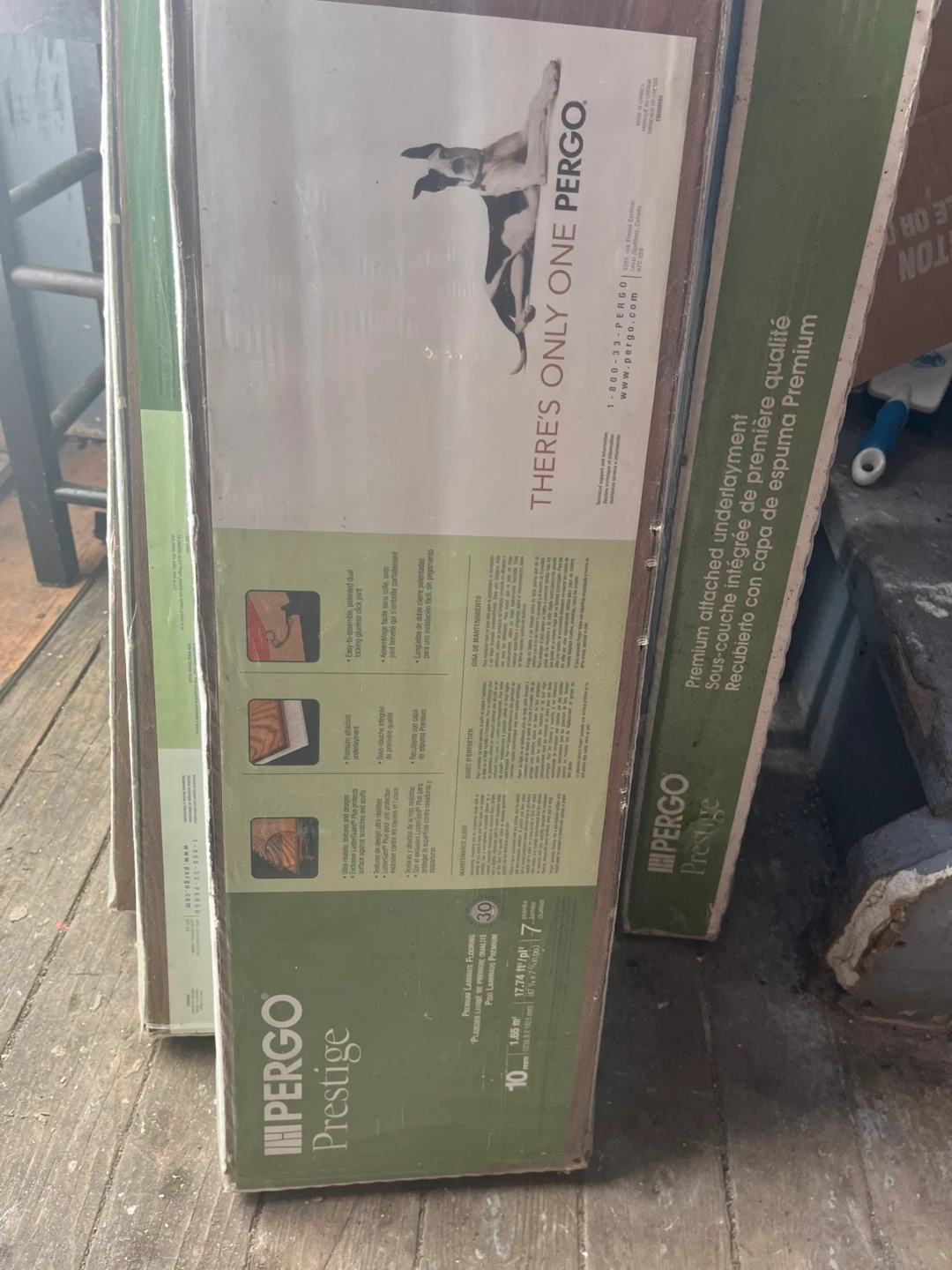 I'm selling three unopened boxes of Pergo laminate flooring, perfect for updating any room in your home! This high-quality flooring is durable, easy to install, and adds a touch of elegance to any space. Additional specs: * Brand: Pergo * Condition: New, still in original packaging. Looking at similar listings, I've priced them at the higher end of that range. If the ad is up, it's available. Happy renovating! Open to offers and trades!
