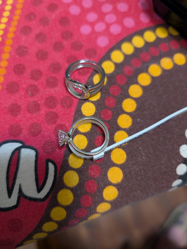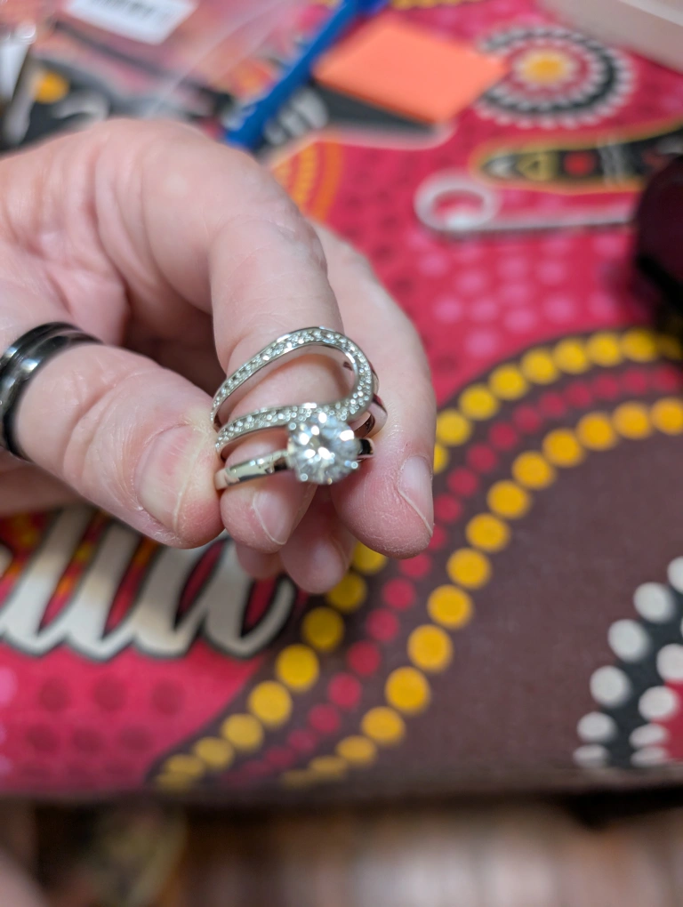176Costume or Fashion Jewellery. Selling an Avon Hammered Illusion necklace and earring gift set. It includes a necklace and matching earrings, hammered metal look. Also included are 4 prs of stud earrings and a fashion jewellery ring set that looks like a wedding set. The solitaire ring fits inside the outer band as shown in the pictures. Approximately size 6. All in great condition. The ring set looks like it's never been worn. The hammered metal set possibly like new as well. Lot #9 All for $5. Pick up ONLY in Beltline neighbourhood (near corner of 15 Ave SW and 14 St SW). FCFS. Cash only. I'm flexible with pick up times but please don't no-show. Also please check out my other listings. Thanks.