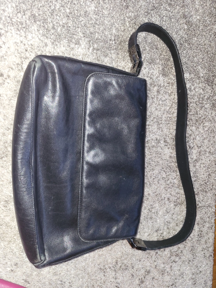 Selling a stylish black leather shoulder bag from Apostrophe! It's in good used condition and ready for a new home. Perfect for everyday use or a night out